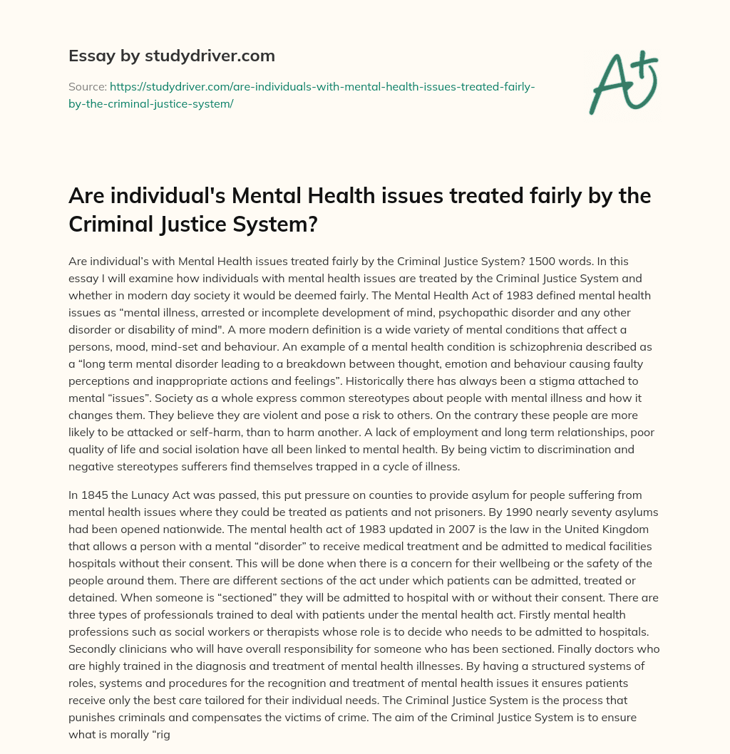 Are individual's Mental Health issues treated fairly by the Criminal Justice System?. (2017, Jun 26).
